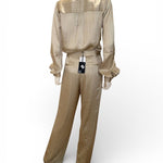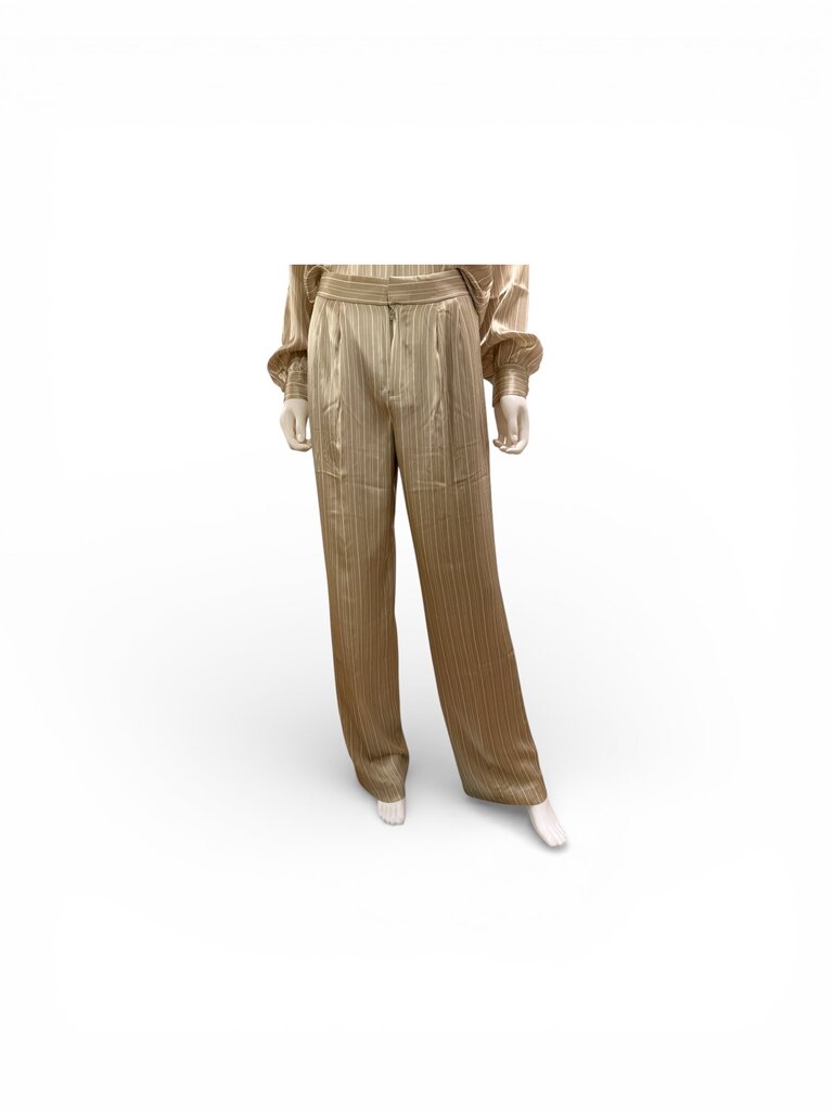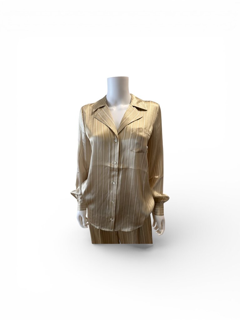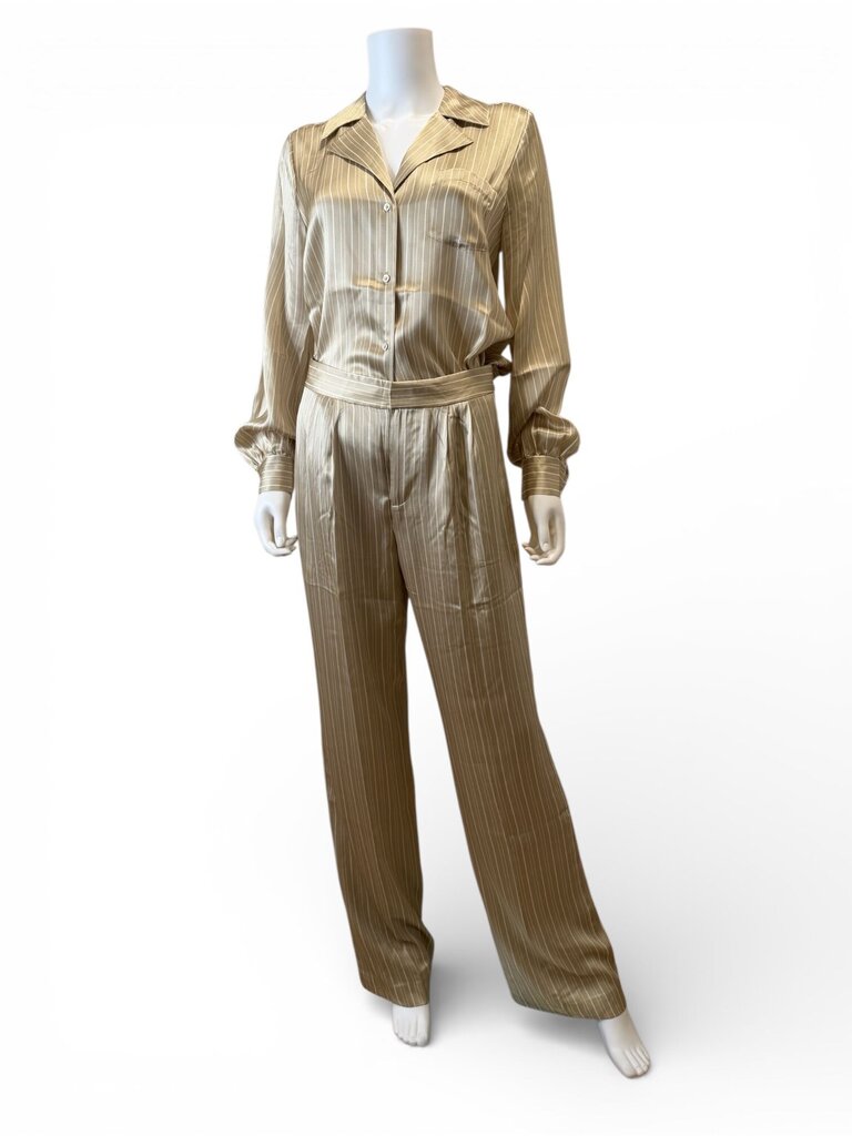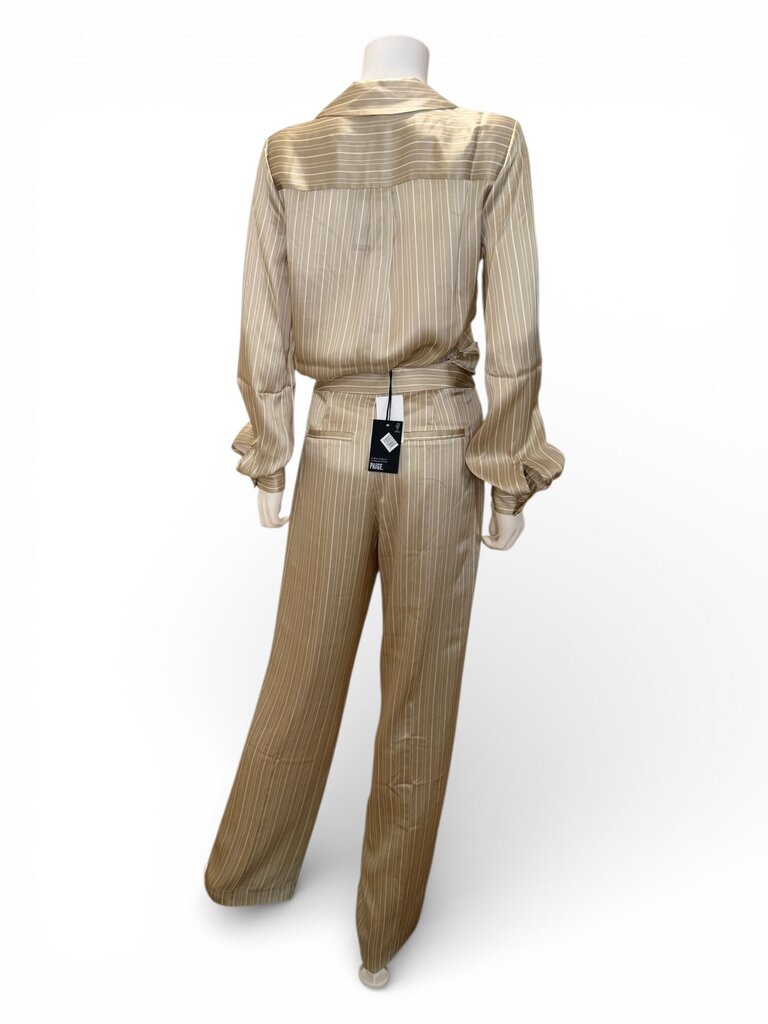 PAIGE is a California lifestyle collection known for their elevated casual chic look and unexpected details. This NWT 100% pure silk set can be worn together or as separates. The trousers feature wide legs and a flowy fit. The blouse is relaxed and can be worn open or buttoned up for flexibility in silhouette and design.