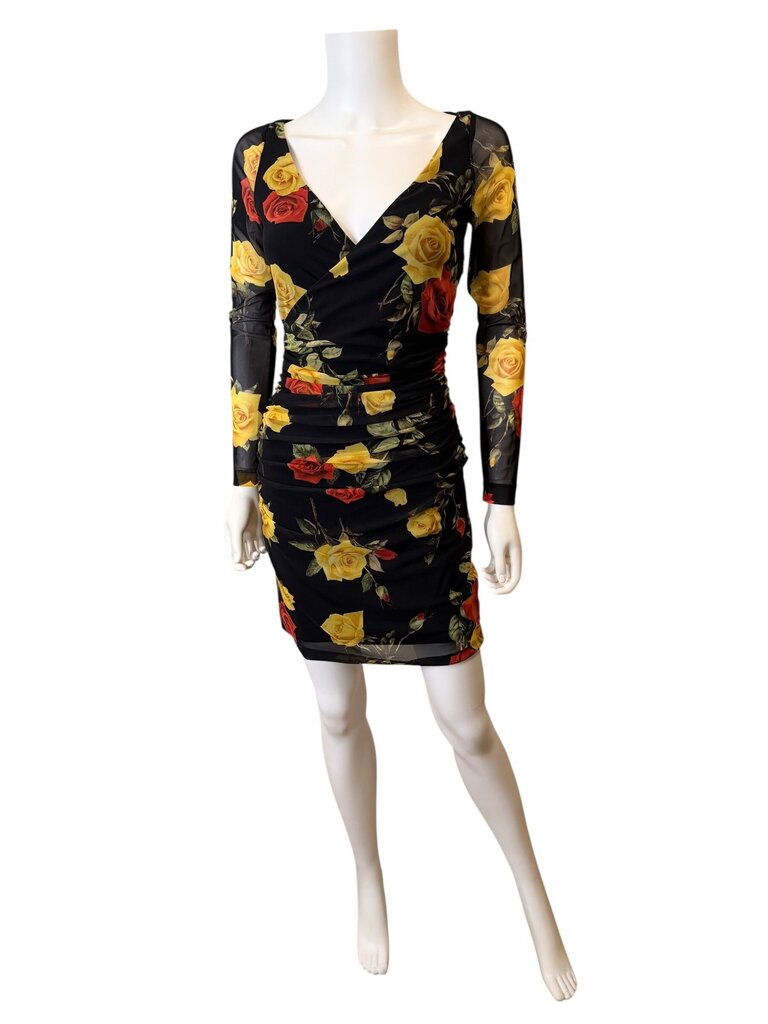 L'AGENCE is a luxe ready-to-wear line offering timeless, effortless feminine design with an understated Parisian influence. This stylish dress features a vibrant floral print with yellow and red roses, perfect for various occasions. Made of a soft fine-gauge knit makes it perfect from desk to dinner. Slips over head with side zipper. 53% viscose, 47% nylon. NWT pristine condition. Size 2. Estimated measurements Bust 34" Waist 26" Hip 34-35"
