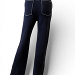 BARRIE is one of the oldest cashmere knitwear manufacturers in Scotland.  In 2012, Barrie joined the prestigious circle of the Chanel Metiers d'Art houses.  These high waisted denim trouser are a blend of finest cashmere and cotton.  Flared cut and topstitching details on pockets and sides seams.  NWT in pristine condition.  Size Small.  Estimated measurements are 26" waist, 32" inseam, 34-36" hip.  These are knitwear so have stretch.
